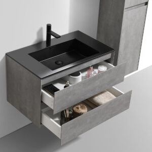 Мебель может быть укомплектована на выбор белой или чёрной раковиной