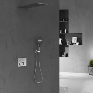 Душевой комплект VSFW-401TGM термостатический встраиваемый, трехрежимный, вороненая сталь