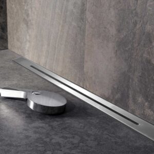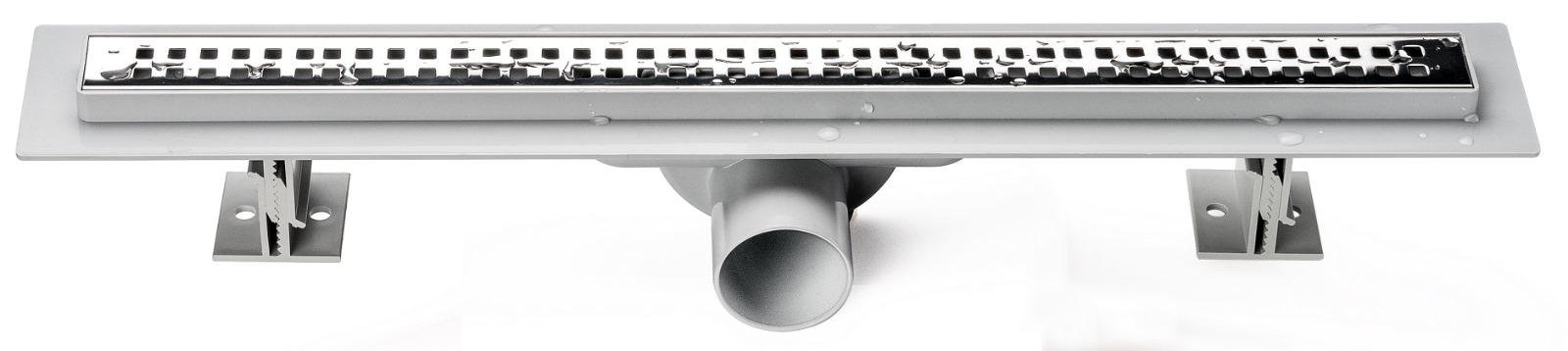 Дренажный канал из ABS-пластика, противозапаховый затвор, решетка из нержавеющей стали 1 мм, комплект регулируемых по высоте опор, пластиковый сервисный ключ.