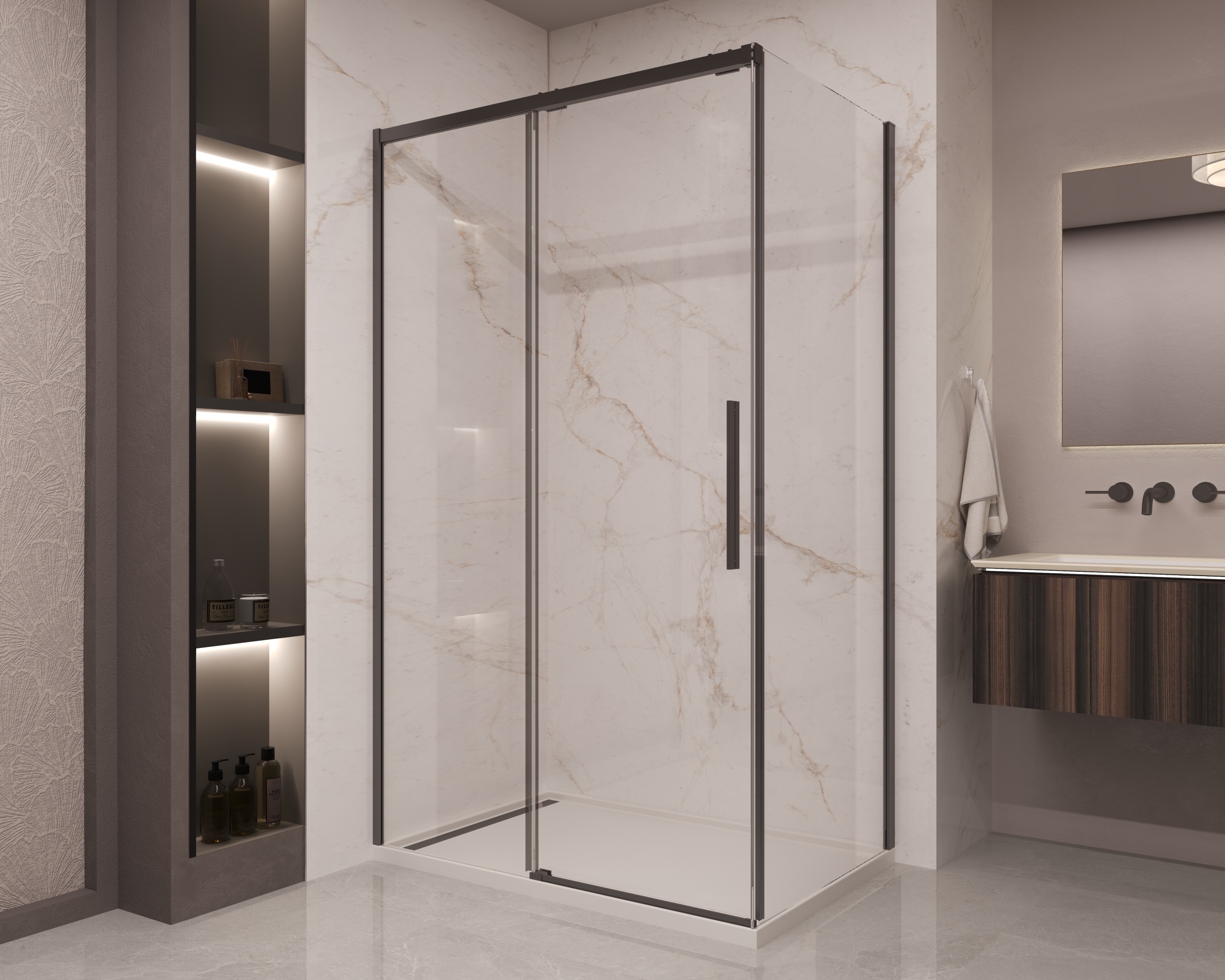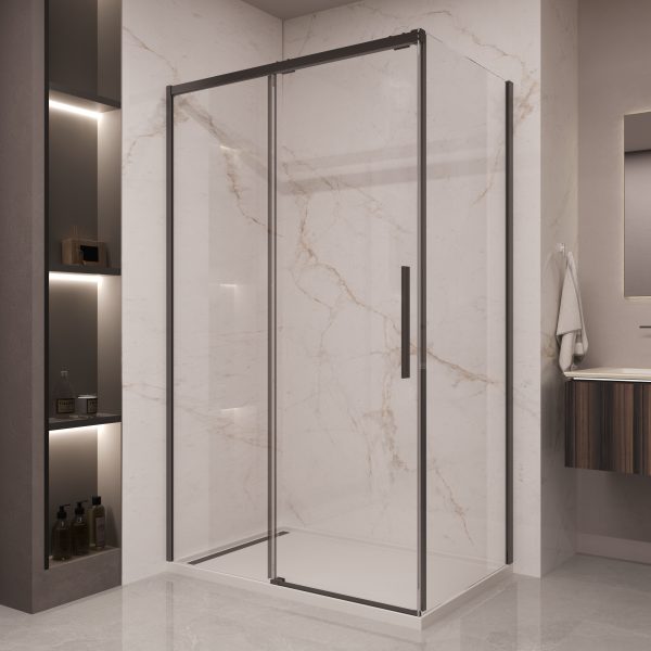 NEW! Душ уголок Stella, черный, стекло прозрачное