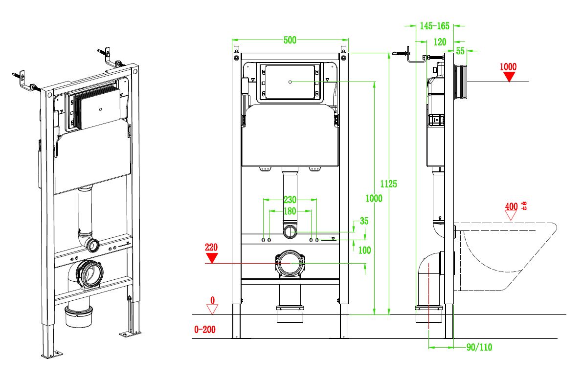 NEW! Инсталляция для подвесного унитаза Vincea, 500*1125