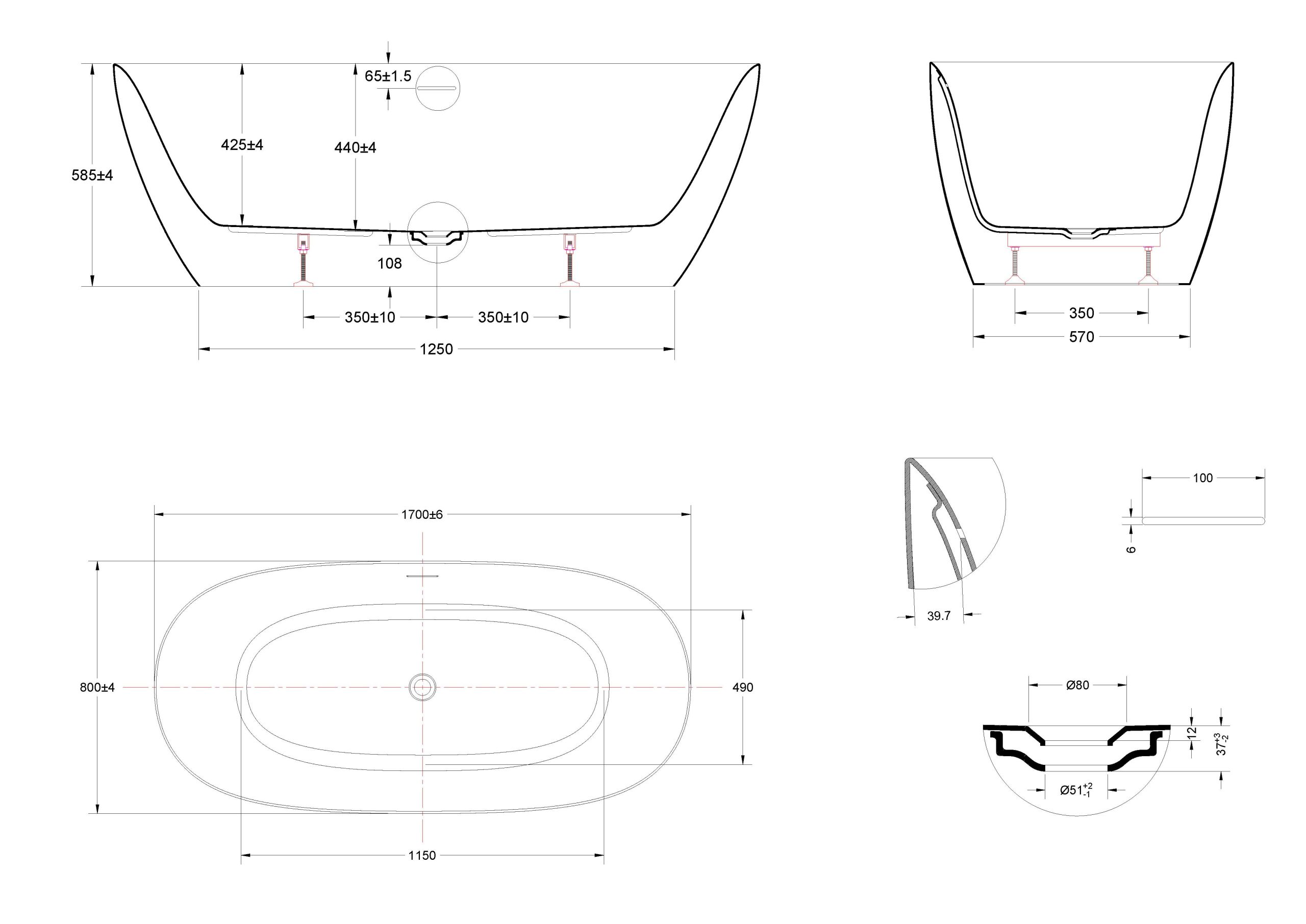 NEW! Ванна акриловая Vincea 1700х800х585, цвет белый матовый